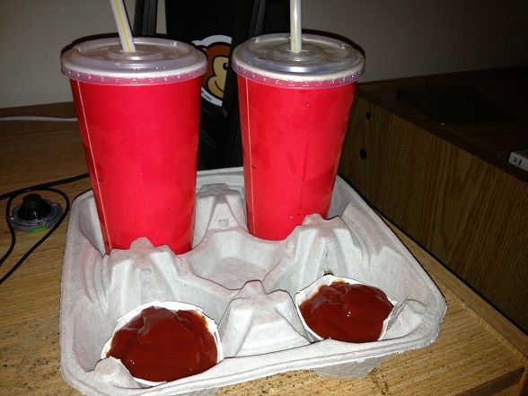 17. Prevent messes in the car by placing dipping ketchup cups in drink cup holders (via JTeeth)