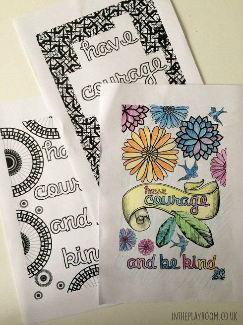 6. Have Courage and be Kind: “Have courage and be kind” Get in on the grown up colouring trend with these Cinderella inspired quote page to colour (via In The Playroom)