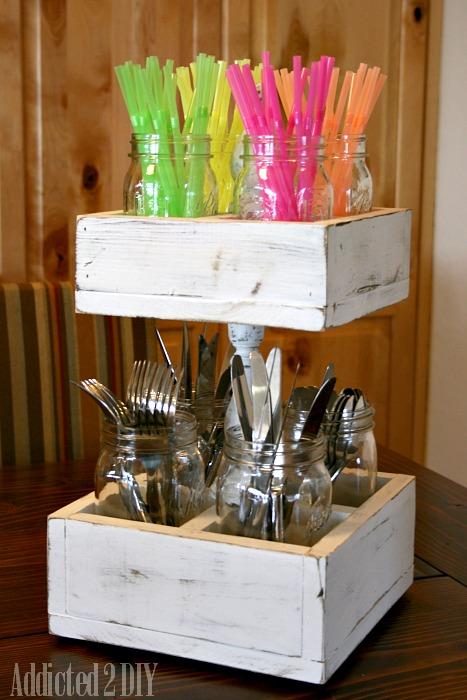 3. Double Decker Mason Jar Craft Caddy: A simple caddy to hold all of your craft supplies. Also great for holding utensils at a BBQ or party! (via Addicted 2 DIY)