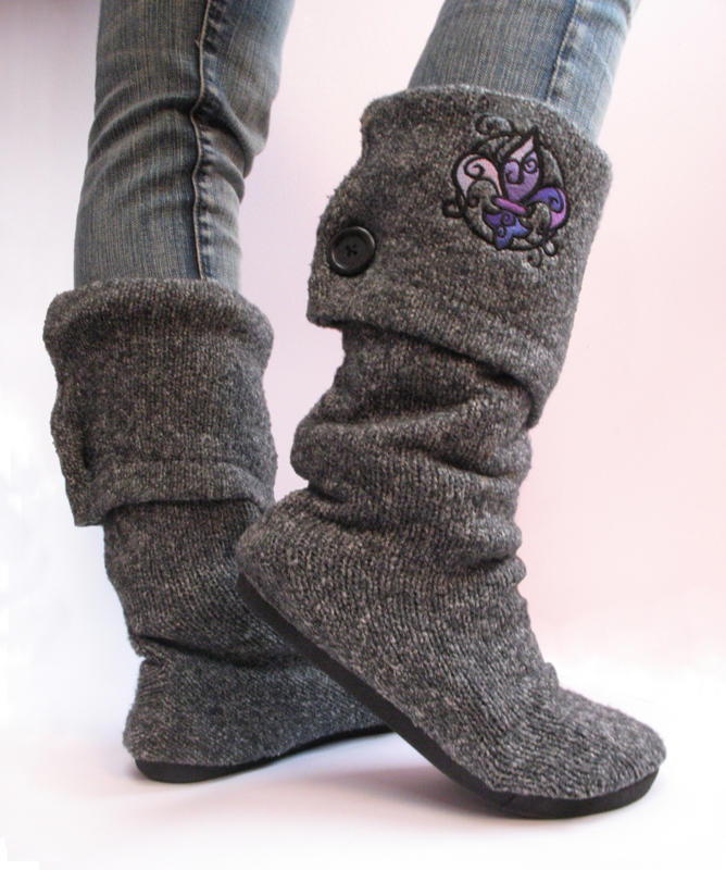 22. Upcycled Sweater Boots: Upcycled sweater boots (w/mini tutorial!) – CLOTHING – What do you get when you mix a cheap pair of flats, an old sweater, and lots of hot glue?Sweater boots!! Yay!I started with this (via Craftster)
