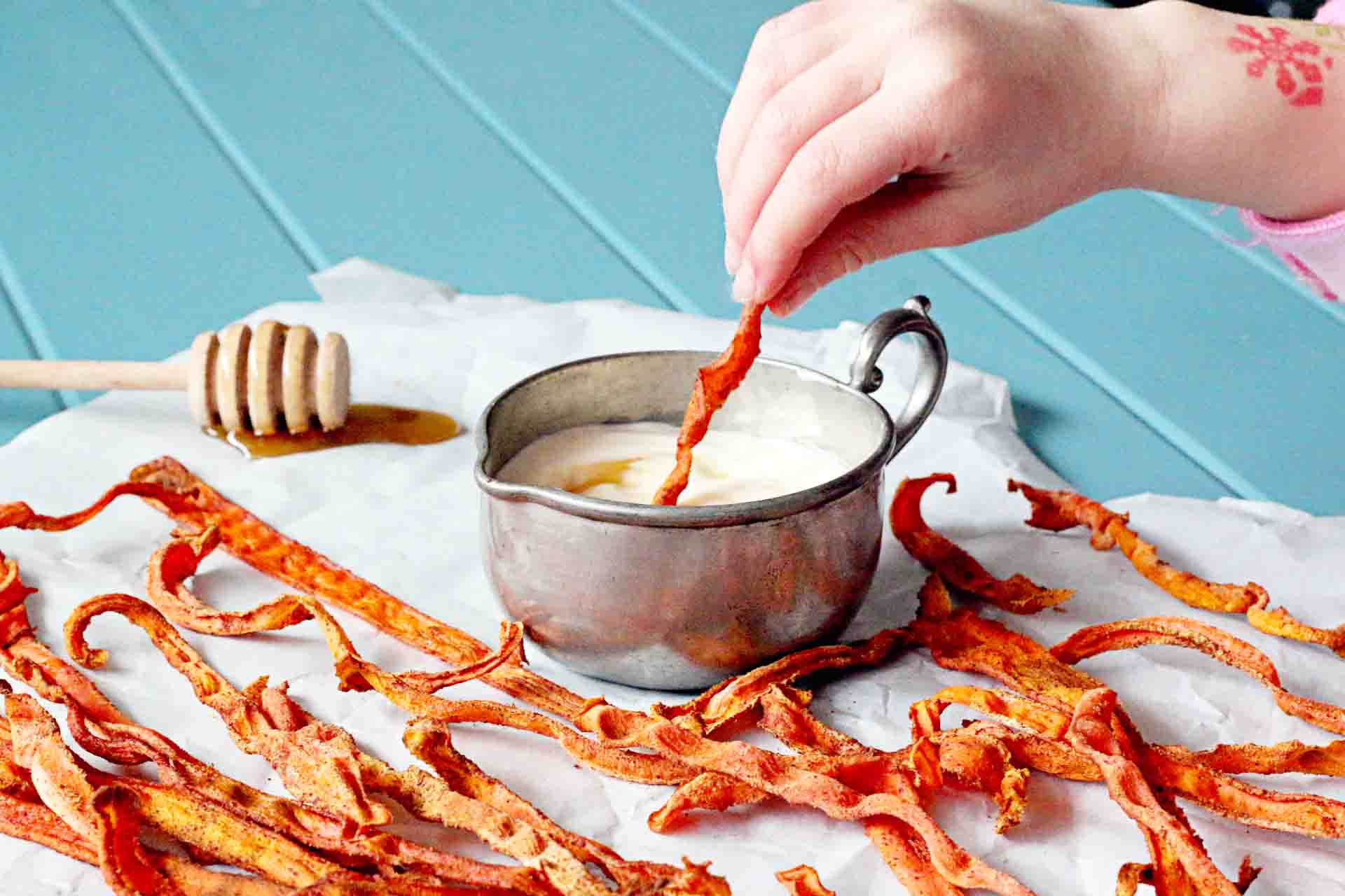 17 Cinnamon Carrot Chips with Honey Yogurt Dip