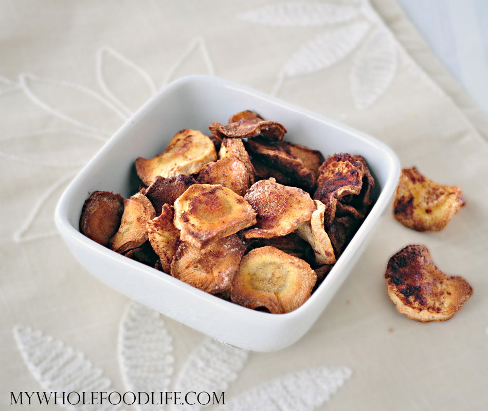 22. Maple Cinnamon Parsnip Chips: parsnip chips, maple cinnamon parsnip chips, snacks, vegetable chips, healthy chips, parsnips, maple cinnamon parsnip chips, snacks, gluten free, vegan (via My Whole Food Life)