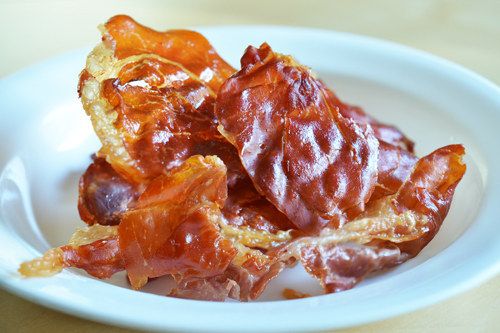 23. Crispy Prosciutto Chips: I prefer prosciutto chips to bacon bits because they cook evenly and there aren’t any unappetizing flabby parts. These Porkitos also add a terrific salty crunch to creamy soups, salads, and pures…. (via Nom Nom Paleo)