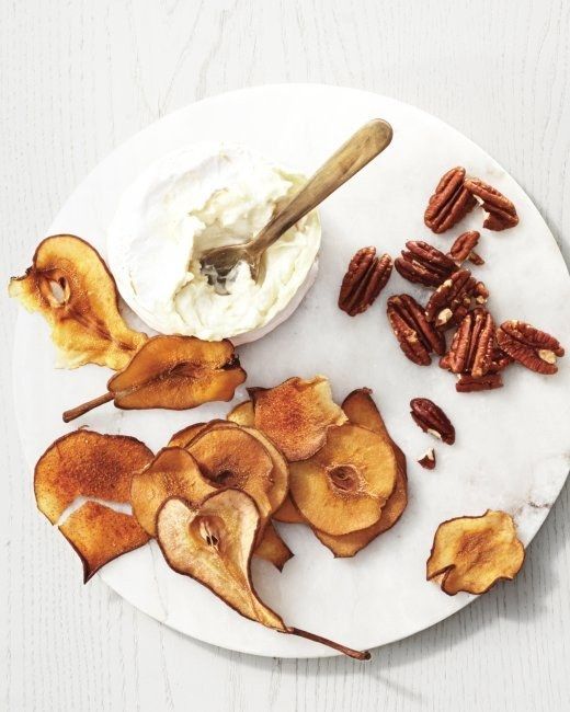 34. Slow-Roasted Pear Chips: Slow-roasted pear chips let you switch out the crackers on your cheese plate for something seasonal (and gluten-free). The slightly sweet crisps are the perfect crunchy partner for a round of gooey triple-cream cheese and some toasted pecans. Of course, the chips are also a satisfying — and wholesome — snack all by themselves. (via Martha Stewart)