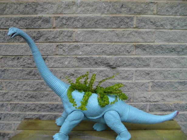 15. Dinosaur Planter: Kids will love this fun project that transforms a plastic dollar store dinosaur into a planter. (via HGTV)