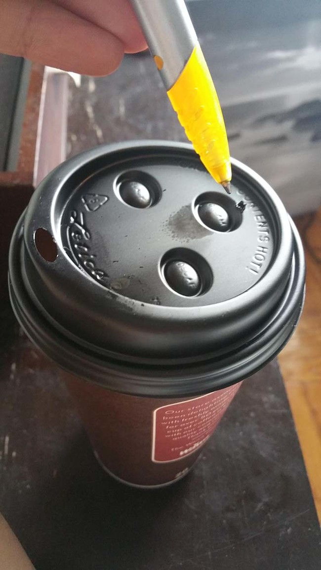 23. Use a pen to open up coffee lids to improve airflow (via Fioricascastle)
