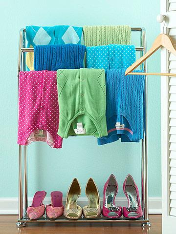 12. Towel Racks for Sweaters: Everyday household items can be used in more ways than you think. Here are some unexpected items that provide perfect storage space. (via Better Homes and Gardens)