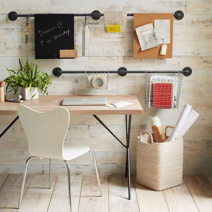 11. Pipe Hanging Storage: Get organized with this DIY Gold Industrial Rail System which is perfect for hanging storage in a creative work space! upcycledtreasures.com (via Upcycled Treasures)