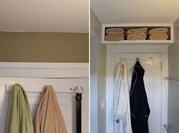 14. Use the extra space over the door: When we were first house hunting, we wanted a three/two meaning three bedrooms and two baths. Well, it turns out the houses we really liked didn’t have two baths. We were lucky enough to get one full bath and a half bath, and considering this house was built in 1928, we were thrilled. (via The 2 Seasons)
