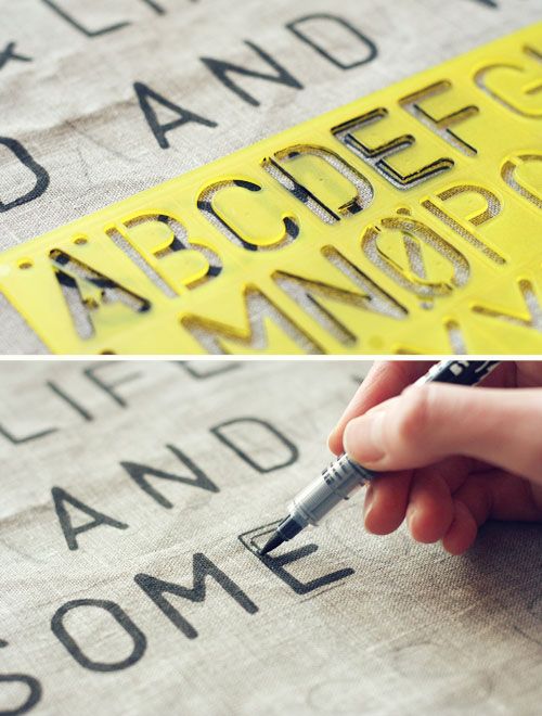 29. Stencil Text on Fabric: Have you tried fabric markers yet? I finally got around to it, and they work great. Paired with a stencil (via Wit and Whistle)