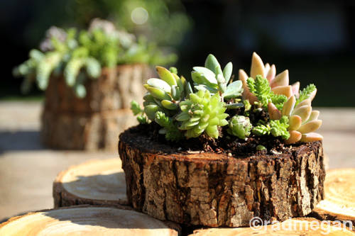 3. Sea Urchin and Wood Slice Succulent Planters: Ive really been missing that satisfying feeling that comes with completing a craft project. So, I decided I needed to make a handful of small, succulent gardens. I drilled out shallow wells in some Juniper wood slices Id been saving and started potting up a few wee gardens. While I was at it, I finally (via Radmegan)