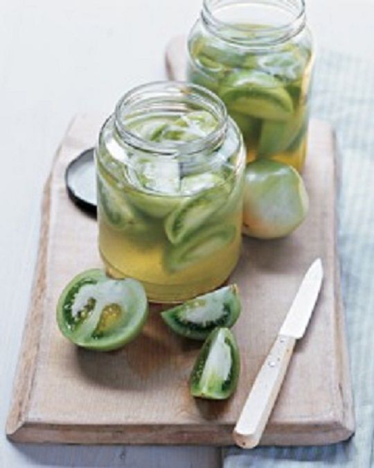 22. Reuse Leftover Pickled Brine: Turn unripe green tomatoes from your garden into snacks with the help of brine left over from store-bought dill pickles. Cut the tomatoes into quarters, and refrigerate them in a covered jar of brine for at least 1 week before serving. The pickled tomatoes can be stored in the refrigerator for up to 1 month. (via Martha Stewart)