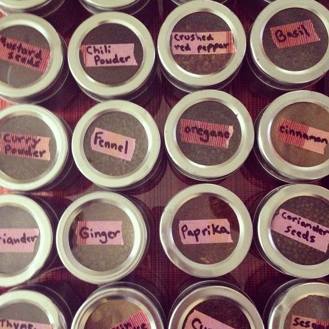 14. Keep spices in matching containers so they’re easier to stack and organize (via thetableblog)