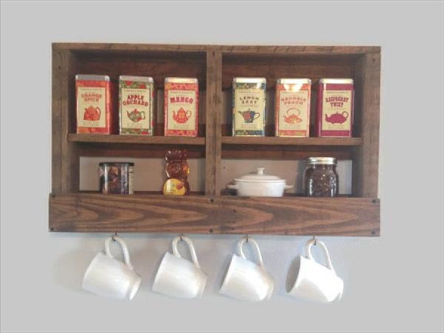 11. Kitchen Coffee and Tea Rack: Take a glance on this handmade DIY pallet kitchen coffee and tea rack which is very best to support your tea or coffee jars and also tea pots and utensils. (via Pallet Furniture DIY)