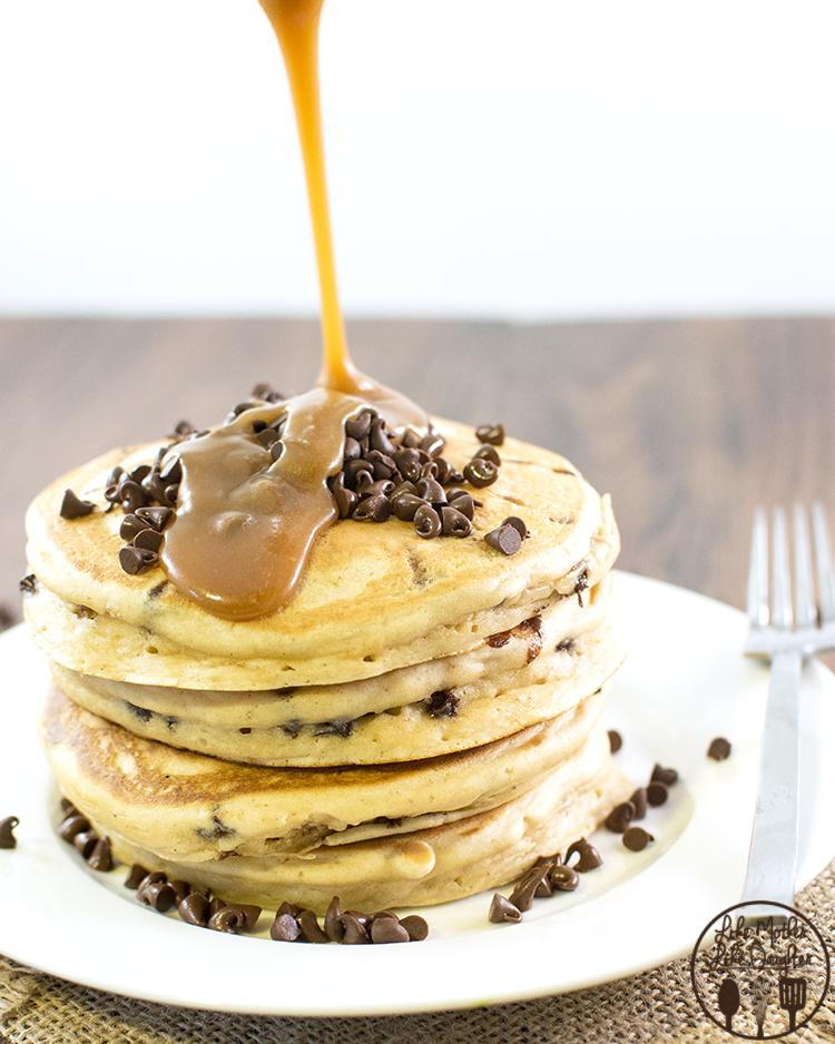 Peanut Butter Chocolate Chip Pancakes4. Peanut Butter Chocolate Chip Pancakes: These peanut butter chocolate chip pancakes are simple to make and taste amazing, especially topped with this peanut butter syrup! (via Like Mother Like Daughter)