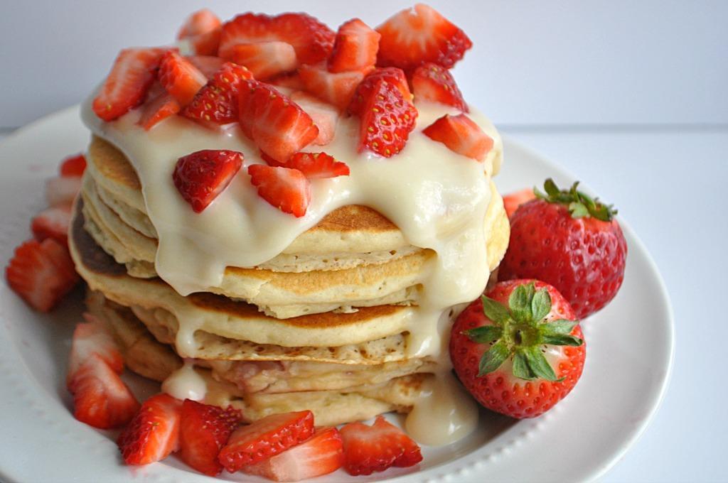 Strawberries and Cream Pancakes3. Strawberries and Cream Pancakes: Strawberry Pancakes topped with a luscious cream cheese glaze and fresh cut strawberries You know that moment when you take a bite of something and that “mmmmm” sound escapes? Exactly. That’s wha… (via House of Yumm)
