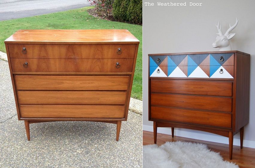 20. Geometric Mid Century Dresser: I love geometric designs and mid century furniture. Last year I painted a geometric nightstand and had to bring the design back for this Dixie mid century dresser. When (via The Weathered Door)