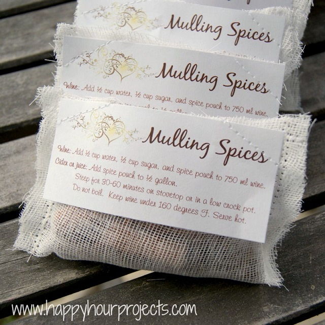 36. Mulling Spices: Cooler weather is here, and if you’re like me, then you love making and gifting delicious warm beverage mixes. Its such a comfort on a chilly day to hold a warm mug of something yummy! Today I’m going to show you how to make up packets of mulling spices. They are a great (via Happy Hour Projects)