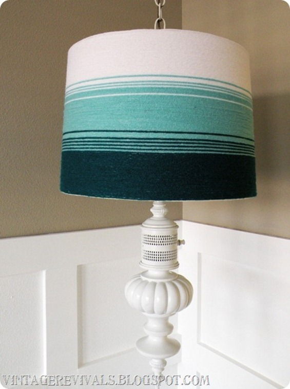 13. Yarn Ombre Lampshade: Ombre is HOT right now. I have been in love with it for a few months but haven’t had a project to use it on yet. This lampshade was the perfect project. And it is SUCH an easy, high impact DI (via Vintage Revivals)