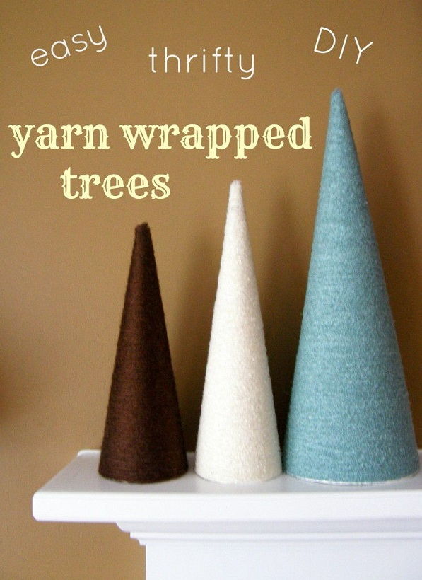 27. Yarn Wrapped Trees: EDIT: Updated post & pictures found HERE So there have been a bazillion little trees popping out on all of the blogs so I thought Id try my own. Im trying out a neutral palette this year mostly whites, creams, silvers, with some green thrown in there. So I wanted my little trees to reflect that. (via Christina’s Adventures)