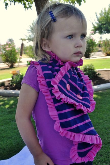 35. Button Ruffle Scarf: Getting ready for Fall again..Our weather has cooled off a bit here and the nippy mornings are getting me in the mood. I seem to get these ideas late at night, and then I stay up wayyyy too late, excited to get it done..Am I alone? Does anyone else do that? I love seeing a (via Living with Punks)