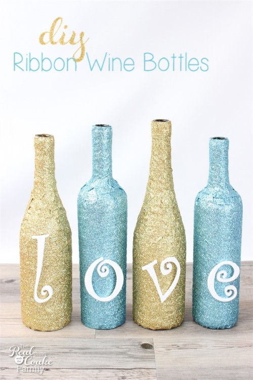 8. Glittery Wine Bottle: Do you love good wine bottle crafts? I know I do. First you have to start by emptying the wine bottle…it makes the craft so hard, but a girl has got to do what a girl has got to do in order to have some fun crafting time. I’ve got a pretty and glittery wine bottle craft for you today that you can (via The Real Thing with the Coake Family)