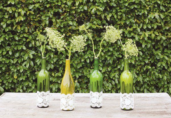 39. Wine and Lace Centerpieces: Hi there! It’sAmber here from Amber Lay Events. This week I’m excited to share a brand new DIY Tutorial featuring an artistic way to repurpose those empty (via Hostess with the Mostess®)