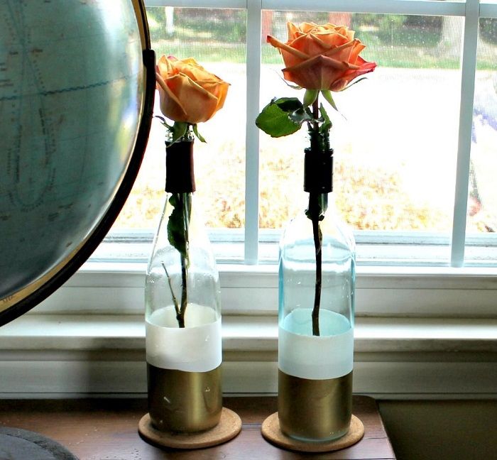 37. Paint Dipped Wine Bottle Vases: Flowers are a great way to add color to your home. But you need to use vases that are stylish and match with your home decor. Luckily, there are plenty of (via Homedit)