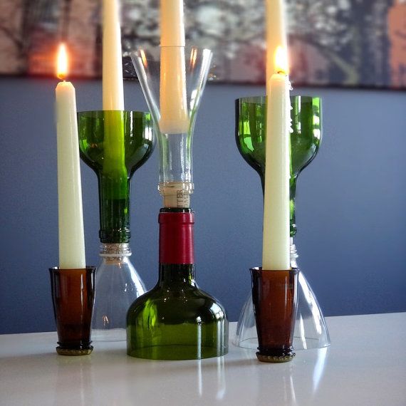 38 Recycled Glass Wine Bottle Candlestick Holders