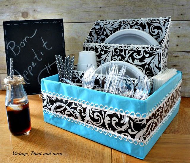 6. Dish Organizer: A dorm dish organizer DIY’d from old boxes and done on a budget. (via Vintage, Paint and more…)