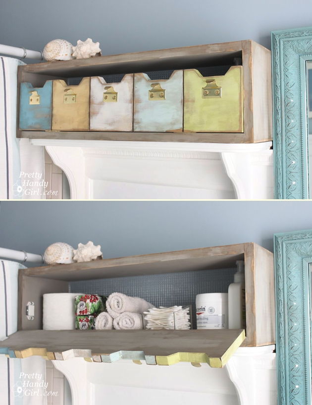 7. Beautiful Cubby Storage: I took one board…one 1″ x 8″ x 8′ board and created a faux cubby box with Plenty O’ Storage that looks great in any room in your home! (via Pretty Handy Girl)