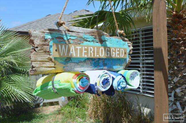 9. Driftwood Beach Towel Holder: This summery piece of driftwood was the perfect piece to use for a hanging beach towel holder! (via Table and Hearth)