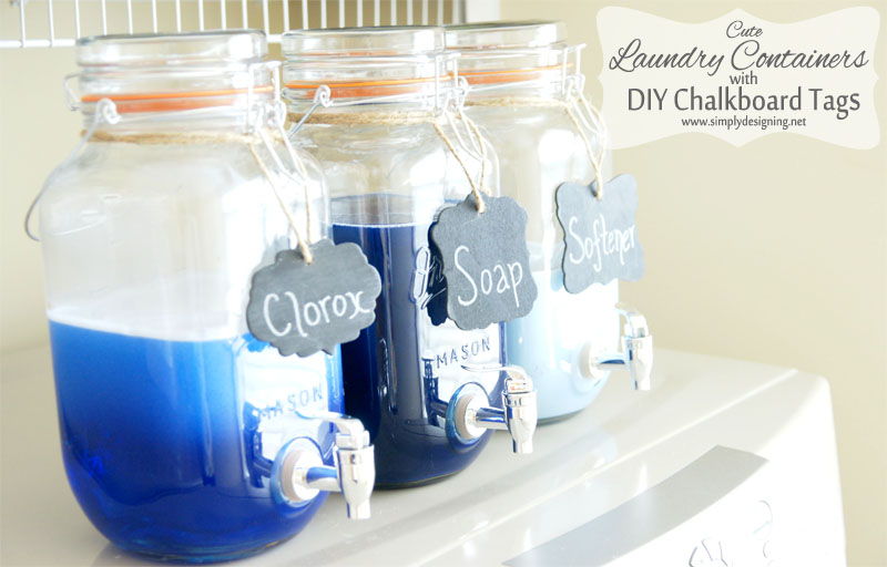 16. Mason Jar Laundry Soap Containers: My laundry room is a messy room! I have baskets for dirty clothes, baskets for clean clothes, cleaning supplies, laundry supplies and a few other random things in there that have no other home. Our laundry room is a bit of a catch-all at the moment and it is driving me nuts! It is on…Read More (via Simply Designing)