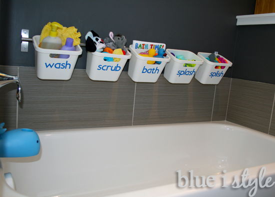 18. Bath Toy Storage: GREAT FOR KIDS & ADULTS! Stylish bathtub toy storage that allows water to drain and toys to dry properly. Easily converts to luxurious organization for guests. (via Blue i Style)