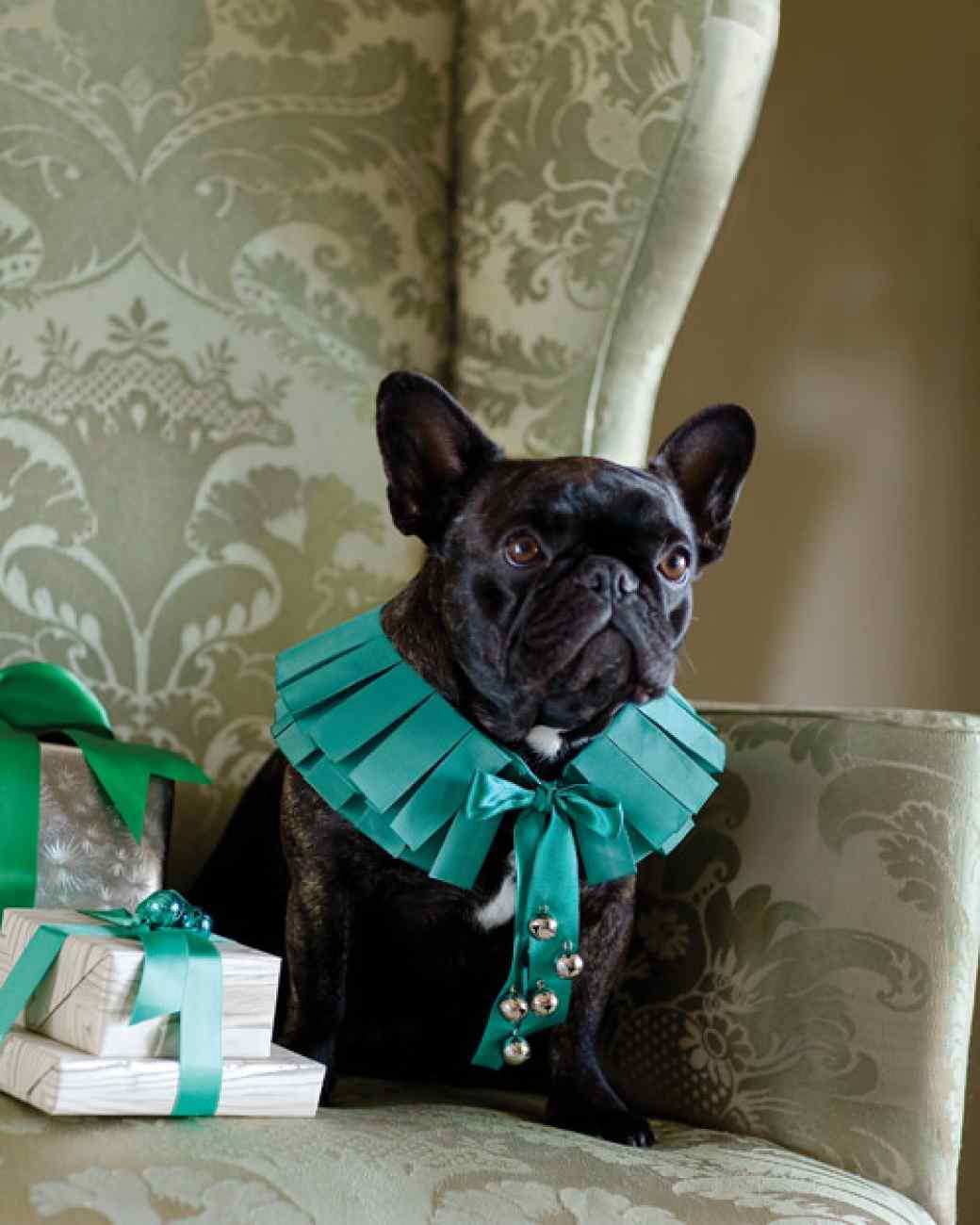 14. Jingle-Bell Dog Collar: It’s the time of year for everyone — canines included — to don finery. In this regal, easy-to-sew collar, worn by Martha’s French bulldog Francesca, two rows of silk-taffeta ribbon are pressed into box pleats and stitched in place. Narrower satin ribbon serves as a tie, and its ends are embellished with tiny bells, putting a jingle into the wearer’s step. (via Martha Stewart)