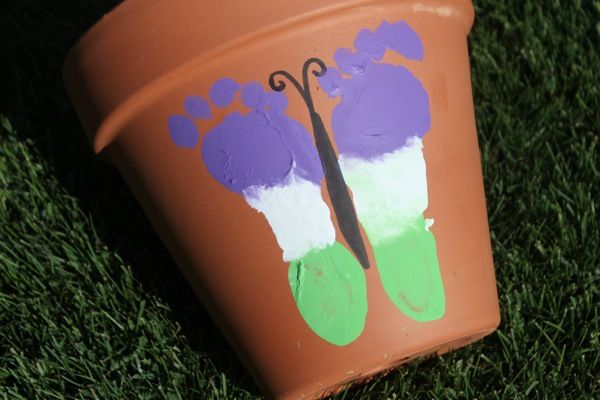 18. Footprint Butterfly Flower Pot: A few weeks ago, Gracens {great} aunt sent me this photo and asked if Miss G could make her one. After some serious detective work, I believe that the photo was originally shared on Carols Classic Gifts and Decors Facebook page, but I could be wrong (please correct me if I am!) Though there were (via Mama.Papa.Bubba)