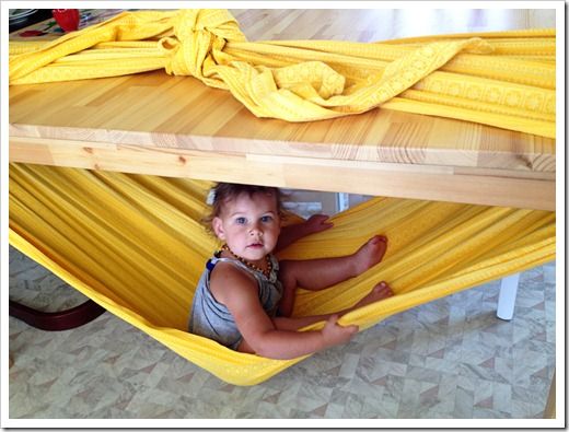 Easy and Fun Woven Wrap Hammock5. Easy and Fun Woven Wrap Hammock: Ive heard of people making hammocks or swings with their woven wraps in the baby wearing communities online, but there doesn’t seem to be much authority about how to do it the right way. I cant find a tutorial for how to make a swing, but I’m planning on trying something out and posting if it… read the rest… (via Joyful Abode)