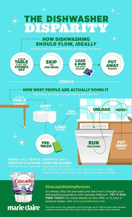 33. How Dishwashing Should Flow, Ideally: Thanksgiving WAS our favorite holiday…until it was time to clean up the scouring, the plate-scraping, the pre-washing. But then we saw this infographic that blew our minds: We make it harder than it needs to be. Here are some other secrets we learned that have literally changed how we do the dishes. (via The Kitchn)
