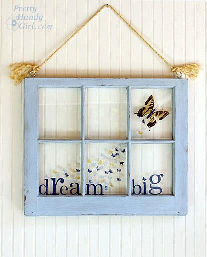 16. Butterfly Window: Phew, what a week. Ive been working on about 5 different projects simultaneously. The biggest accomplishment this week was my screened porch makeover. I have been itching to make it an outdoor living and relaxing room for about 4 years now. Well, it is about 95% done. And to celebrate, Pretty Handsome Guy and I (via Pretty Handy Girl)