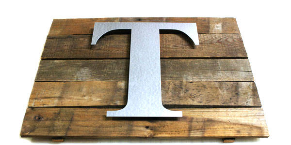 22. Rustic Wall Plaque: Use a Galvanized Steel Metal Craft Letter & reclaimed wood from old pallets to create this rustic wall plaque. (via CraftCuts.com)