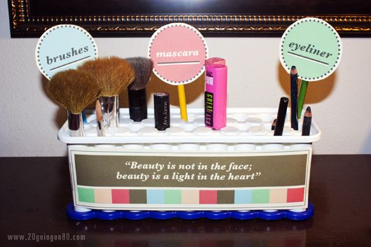 8. Ice Cube Tray Makeup Holder: Is your bathroom counter always cluttered with random makeup brushes, eyeliner, and mascara? Mine looks like a tornado went through every morning. No joke. Whenever I go back home for the weekend my siblings yell at me for destroying the bathroom counter. Whatevs, at least I admit it, right? So when I found this ice (via Design Eat Repeat)