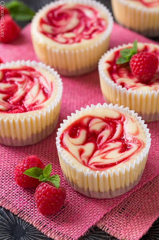 15. Raspberry Swirled Cheesecake Cupcakes: Cheesecake has got to be on my list of top 3 favorite desserts, which is why you see it on here quite a bit. You can never have too many cheesecake recipes (via Cooking Classy)