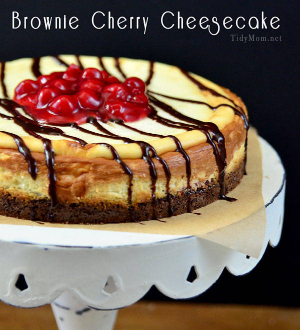 8. Brownie Cherry Cheesecake: Brownie Cherry Cheesecake is a creamy cheesecake with a brownie crust that is easy to bake and full of flavor. (via Tidy Mom)