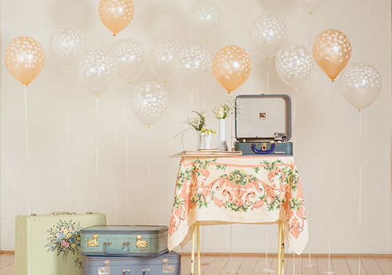 22. Girly Vintage Bridal Shower Inspiration: Boy do we have some cute shower inspiration for you guys today. Think mix-and-match vintage china, balloons everywhere, and scrumptious looking treats. Little Vintage Rentals says, The vision for this bridal shower shoot was sugary sweet and feminine, with a retro twist. The vintage-inspired gowns helped set the tone for the soiree where guests danced (via 1001 Layer Cake)