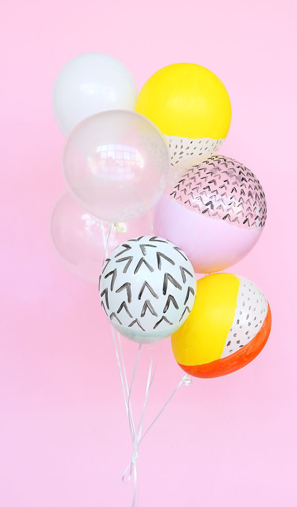 45. Graphic Painted Party Balloons: I am so excited to share these fun balloons. Do you know you can make any average party balloon spectacular with just paint!?! A couple of years ago, I created a fun these fun two-tone painted balloons. They were a favorite of mine, but Ive always wanted to add a bit more of a graphic punch to (via A Subtle Revelry)
