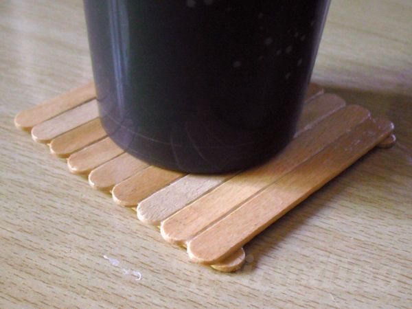 7. Coasters: The popsicle stick coasters are so cheap and they look great! (via Reciclodina)