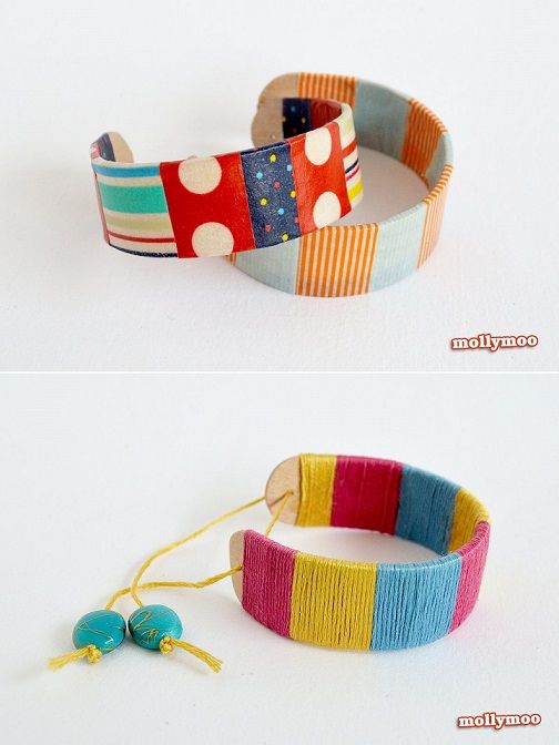 9. Bracelets: Detailed photo tutorial on how to make craft stick bracelets, with three decorating options: washi tape, embroidery thread and paint (via MollyMooCrafts)