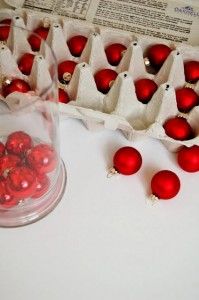 23 Egg cartons provide organization and protection from breakage for small holiday decorations