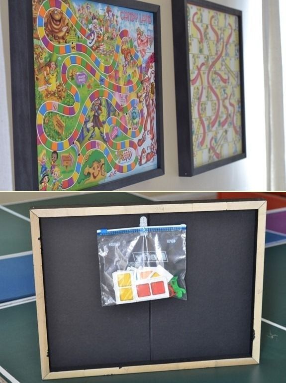 34. Game Board Storage Art: If you have been around Infarrantly Creative for any length of time you know about my disdain for childrens game boxes. They always get crushed and pieces get lost. Well here’s a little storage … (via Infarrantly Creative)