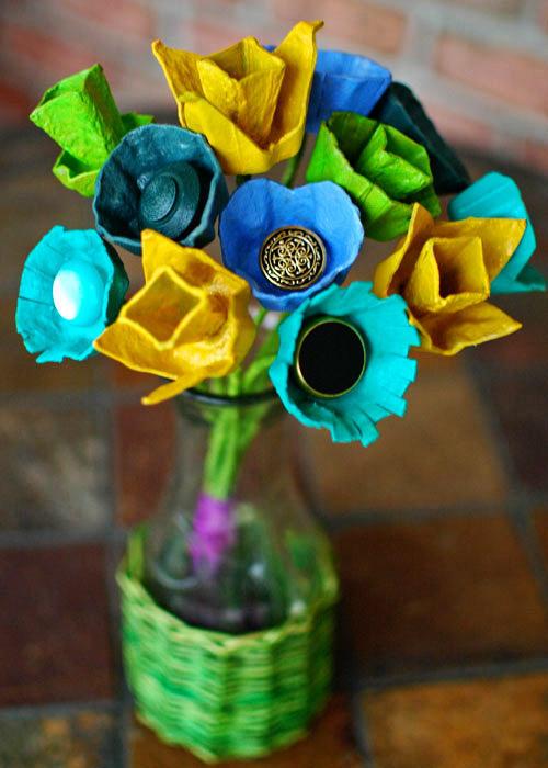 7. Egg Cartons and Vintage Buttons: Learn how to make these DIY centerpieces out of egg cartons. (via Intimate Weddings)